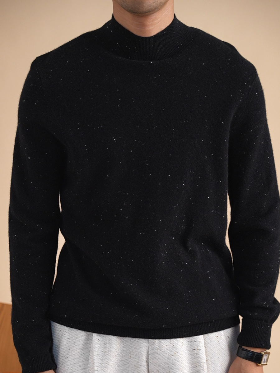 Ce pull à col montant en laine mélangée est le complément parfait à votre garde-robe d'automne et d'hiver. Fabriqué à 100% en laine, il offre une chaleur et une douceur exceptionnelles tout en restant respirant. Le design subtil et moucheté donne à la coupe classique une touche moderne, la rendant polyvalente pour les occasions décontractées et formelles. Le col montant côtelé offre un confort supplémentaire et confère au look un attrait sophistiqué. Disponible en trois couleurs intemporelles : gris, noir et crème.