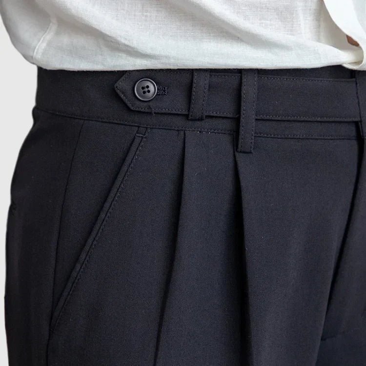Ce pantalon incarne l'élégance intemporelle avec sa coupe droite et sa taille haute qui flatte votre silhouette et allonge votre silhouette. Le matériau de haute qualité assure un ajustement confortable, tandis que la conception simple offre des options de combinaison polyvalentes pour différentes occasions. Avec ce pantalon, vous rayonnez de confiance et de style, que ce soit au bureau ou lors d'occasions spéciales.