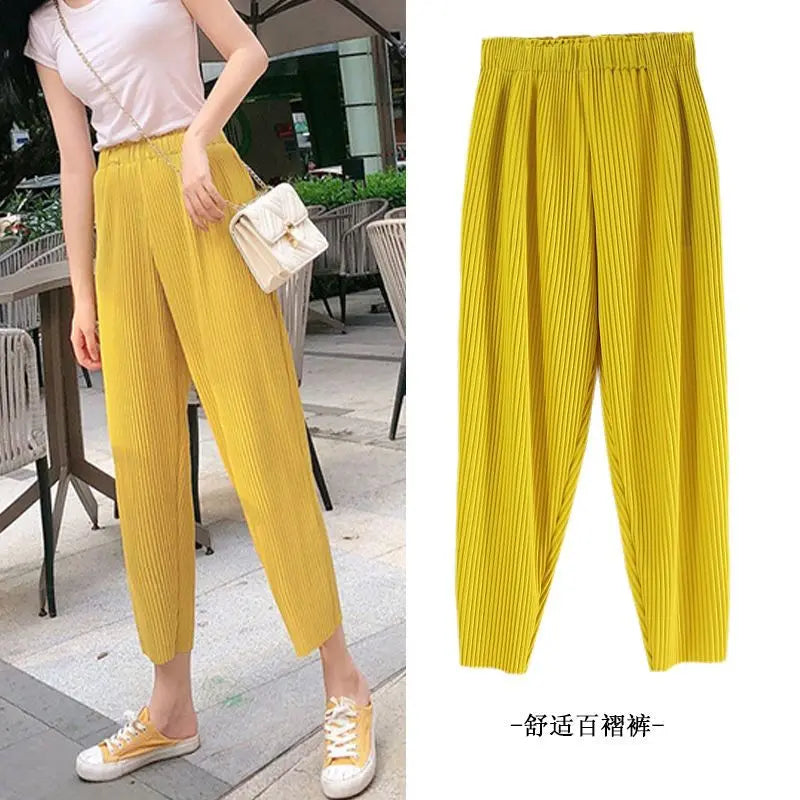 Unsere stilvollen High-Waist Plissee-Haremshosen sind die perfekte Mischung aus Eleganz und Komfort für den modernen modebewussten Individualisten. Mit ihrem klassischen und doch zeitgemäßen Design sind diese Hosen ein unverzichtbares Kleidungsstück, das jede Garderobe aufwertet.