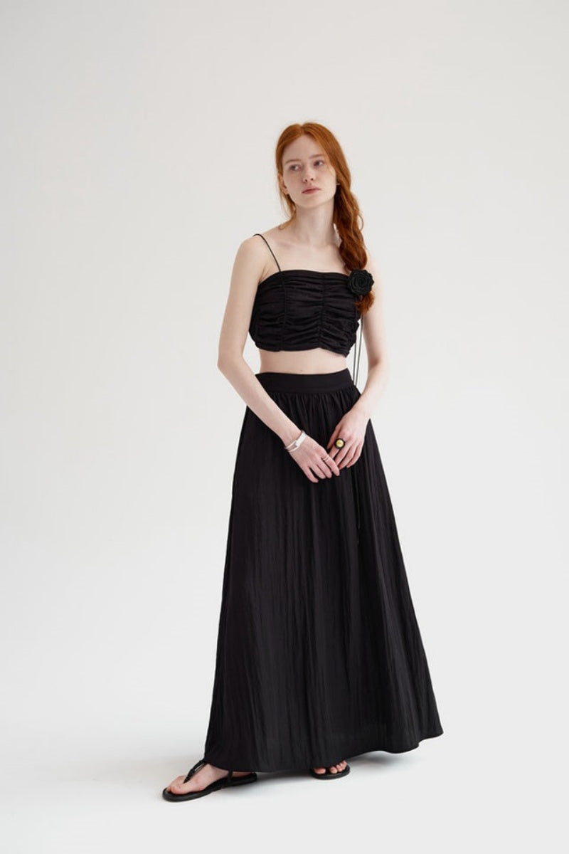 - Design: Zweiteiliges Set mit Rundhals-Top und plissierten langen Ärmeln