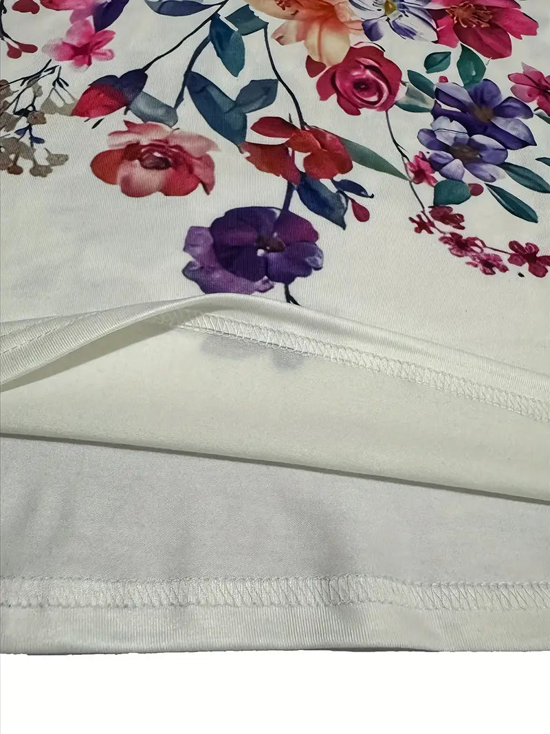 Introducing Aurora , Ihr Frühlingst-Shirt mit bezauberndem Blumendruck und klassischem Rundhalsausschnitt. Perfekt für die wärmeren Tage bietet Aurora eine charmante Kombination aus Stil und Komfort. Mit einem zeitlosen Rundhalsausschnitt und einem verspielten Blumendruck verleiht dieses T-Shirt Ihrem Look eine frische Note. Hergestellt aus weichen Materialien ist Aurora ideal für den Alltag und lässt sich mühelos mit anderen Frühlingsoutfits kombinieren. Genießen Sie den Frühling mit Stil und Leichtigkeit in Aurora - wo Blumenmuster und Komfort aufeinandertreffen.