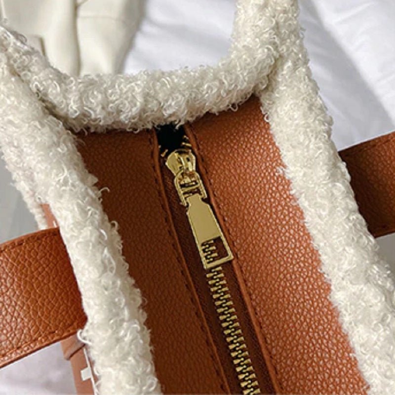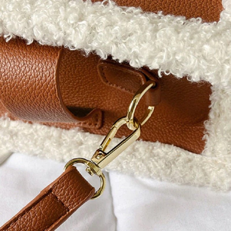 Die Tasche ist aus hochwertigem Lammwollmaterial gefertigt, das langlebig ist und sich weich anfühlt. Die Tasche hat ein großes Fassungsvermögen und kann Ihre alltäglichen Dinge ordentlich verstauen. Der Gurt kann auf die gewünschte Länge eingestellt werden.