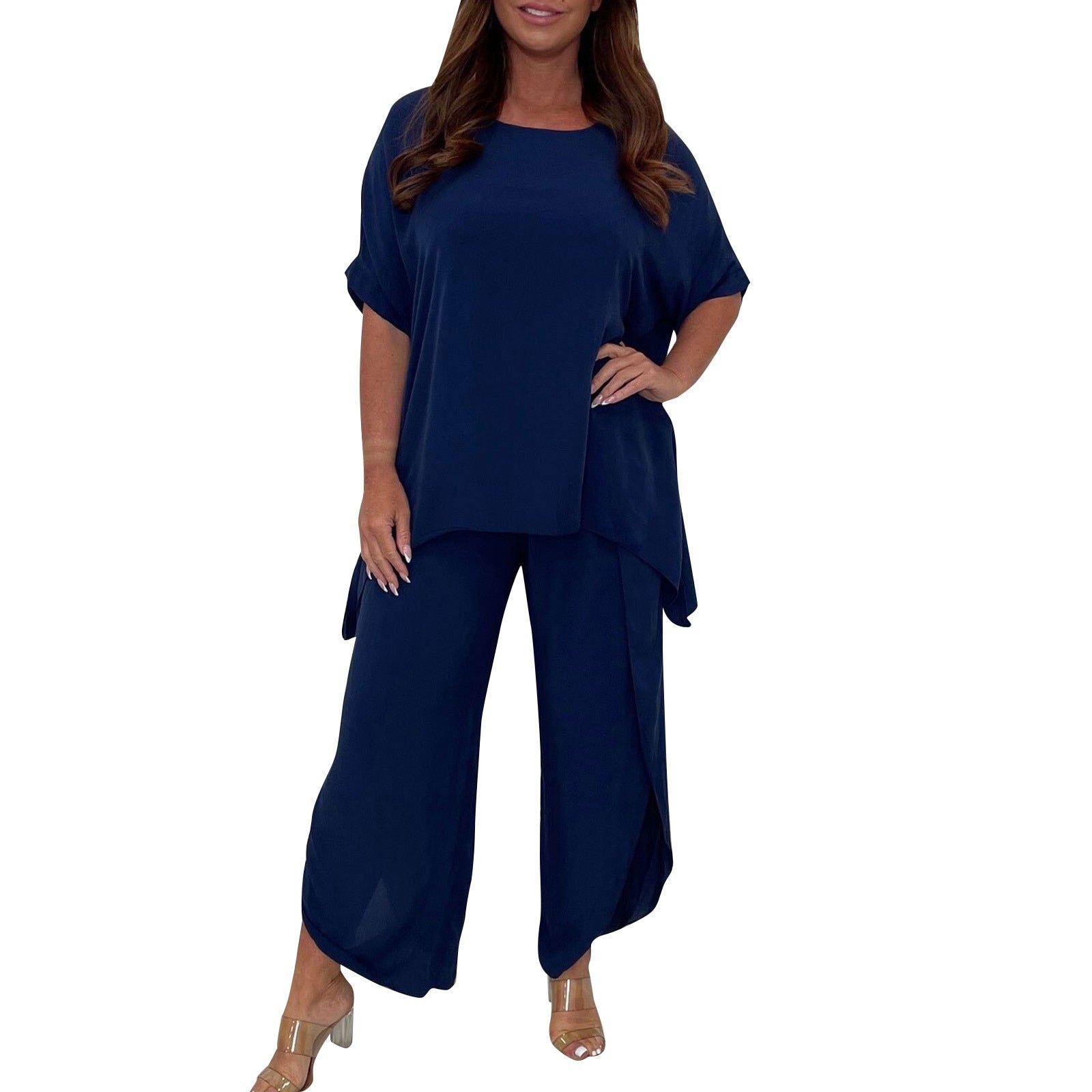 Aus den feinsten Materialien gefertigt, strahlt dieses Set einen Hauch von raffinierter Eleganz aus, der Ihre Garderobe mühelos aufwertet. Das locker sitzende Oberteil fällt anmutig und erlaubt uneingeschränkte Bewegung und eine entspannte Silhouette, die lässigen Luxus verkörpert. Der luftige Stoff umschmeichelt sanft Ihre Haut und sorgt auch bei längerem Tragen für ein atmungsaktives und angenehmes Tragegefühl.