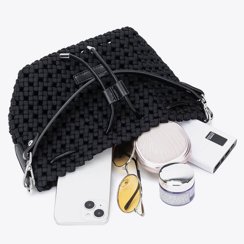 Diese wunderschöne Beuteltasche aus feiner Seide verkörpert eine einzigartige Eleganz, die jedes Outfit mühelos aufwertet. Dank ihres leichten und geräumigen Designs können Sie mühelos alle wichtigen Dinge verstauen, ohne sich durch zusätzliches Gewicht belastet zu fühlen. Die Tasche vereint Zweckmäßigkeit und Eleganz perfekt. Dank ihrer neutralen Farbtöne und dem exquisiten Webmuster verleiht diese Beuteltasche jedem Outfit einen Hauch von Schönheit und Flair.