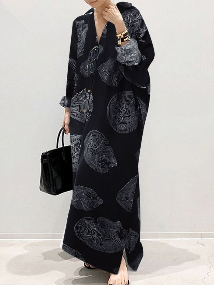 Wir stellen unser neues langes, fließendes Kleid vor, das mit seiner lockeren Passform für ultimativen Komfort und Stil sorgt. Dieses Kleid bietet eine Auswahl an verschiedenen Mustern, von Blumen bis hin zu geometrischen Prints, und ist damit perfekt für jeden Anlass. Der leichte Stoff fällt wunderschön und verleiht Ihnen eine schmeichelhafte und feminine Silhouette.
