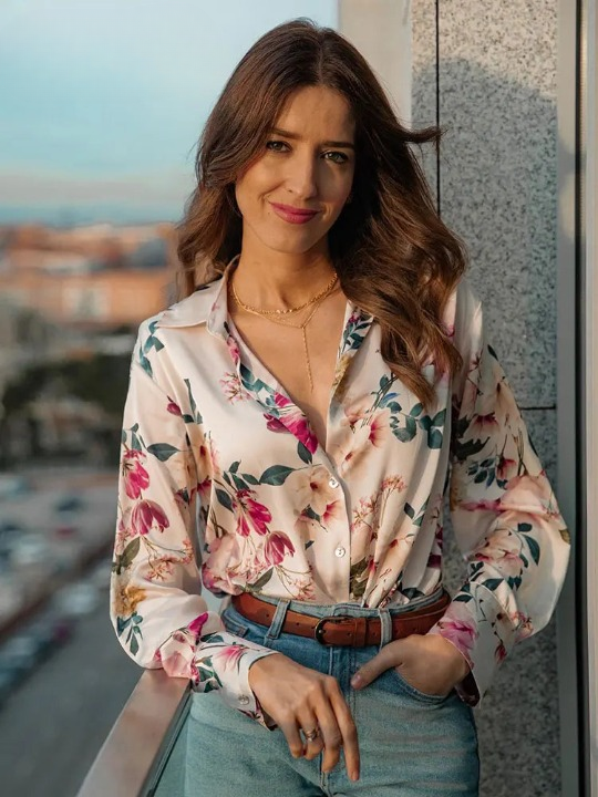 Schreiten Sie in Stil mit unserer wunderschönen Bluse, sorgfältig entworfen für mühelose Eleganz. Der fließende Stoff fällt schön und umhüllt jede Figur mit Anmut.