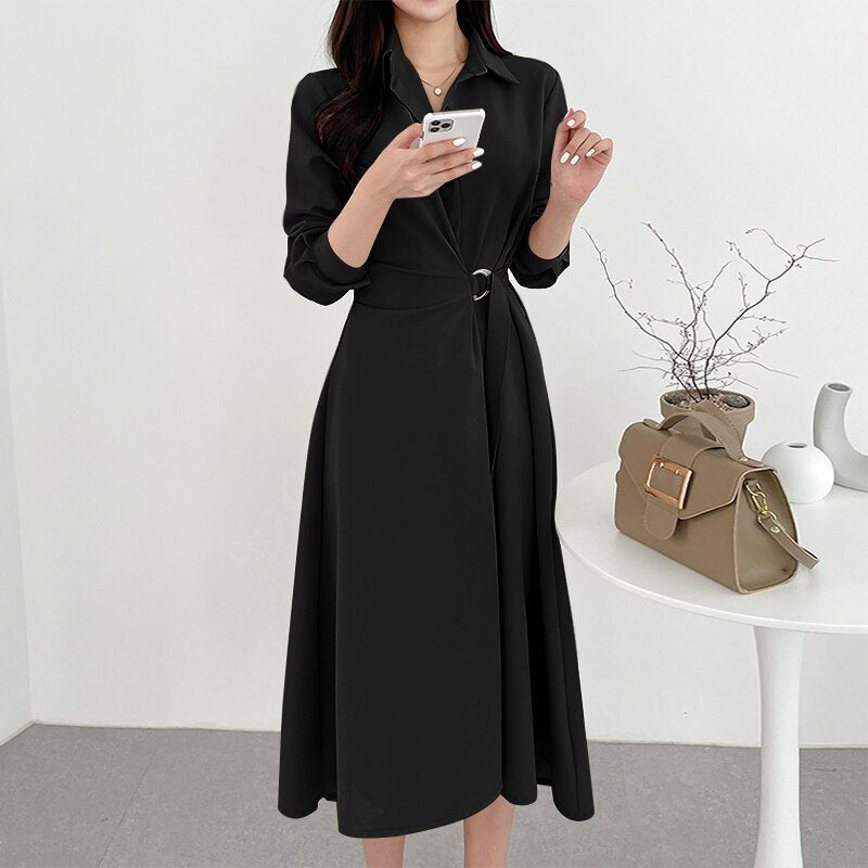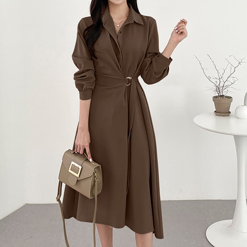 Dieses elegante Kleid ist perfekt für jeden besonderen Anlass. Mit seinen schönen langen Ärmeln und dem eleganten Gürtel in der Taille hat dieses Kleid einen luxuriösen Look, in dem Sie sich wohlfühlen und gut aussehen werden.