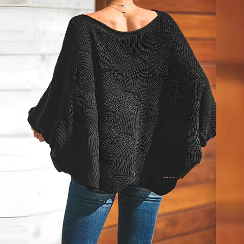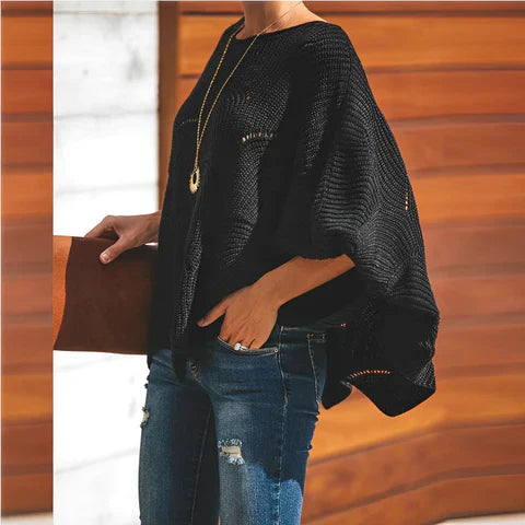 Wir präsentieren unser Eloise - Elegantes, lockeres Top mit Glockenärmel, hergestellt aus einem luxuriösen Baumwollmischgewebe. Dieser Pullover ist so konzipiert, dass er Sie in jede Saison bequem hält und dabei trotzdem stilvoll und trendy ist.