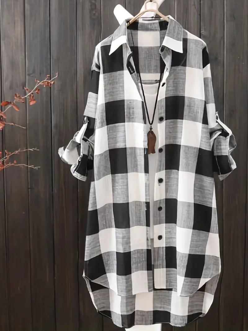 Entdecken Sie Emilia , das elegante lange Karohemd. Dieses stilvolle Hemd kombiniert zeitlose Eleganz mit einem lässigen Karomuster, um Ihnen einen vielseitigen und ansprechenden Look zu verleihen. Die hochwertigen Materialien sorgen nicht nur für angenehmen Tragekomfort, sondern betonen auch die Qualität dieses zeitlosen Designs. Mit Emilia sind Sie bestens gerüstet, um einen modischen Auftritt bei verschiedenen Anlässen zu genießen. Gönnen Sie sich dieses Karohemd und setzen Sie ein stilvolles Fashion-Statement.