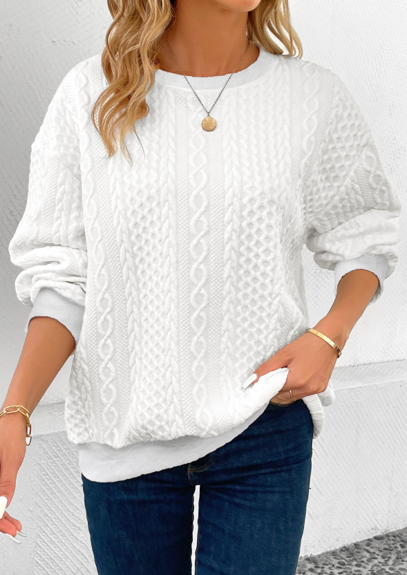 Der Evelyn Pullover mit Rundhalsausschnitt bietet einen mühelosen Stil. Dieses sorgfältig gefertigte Design kombiniert Komfort mit einem Hauch von klassischer Schlichtheit dank des Rundhalsausschnitts. Evelyn ist perfekt für die moderne Frau, die sowohl Mode als auch Bequemlichkeit schätzt, und lässt sich mühelos von einem Stadtbummel bis zu einem gemütlichen Tag tragen. Die hochwertige Verarbeitung sorgt dafür, dass dieses zeitlose Kleidungsstück zu einem dauerhaften Bestandteil Ihrer Garderobe wird. So wird Evelyn zu Ihrem Lieblingsteil für modernen Komfort und dauerhaften Stil.