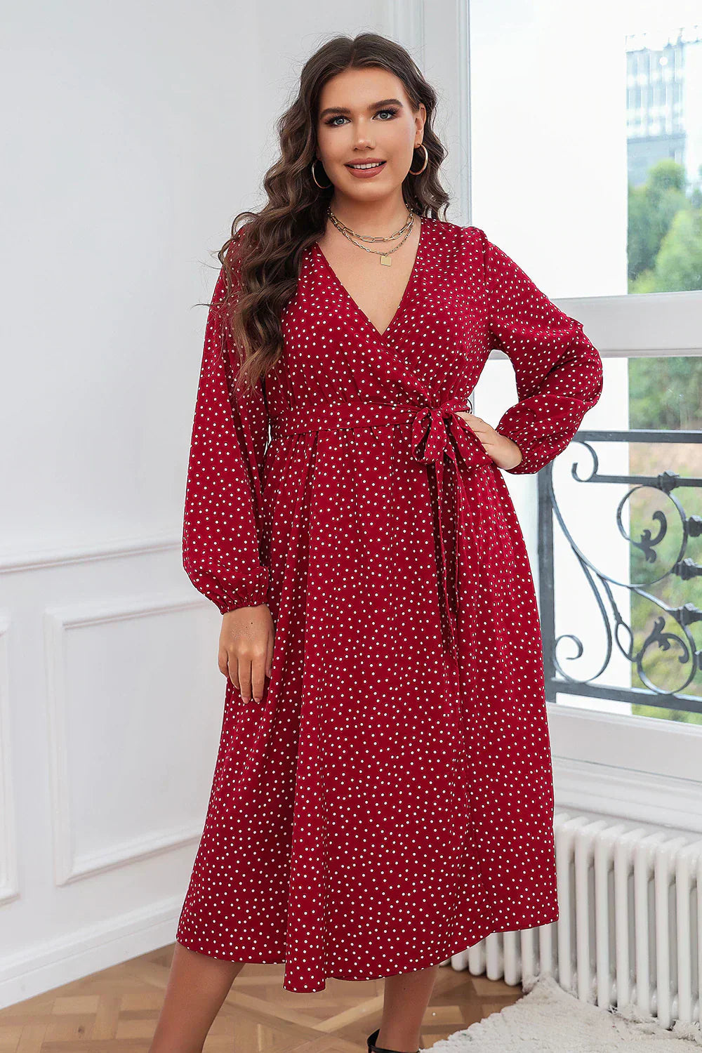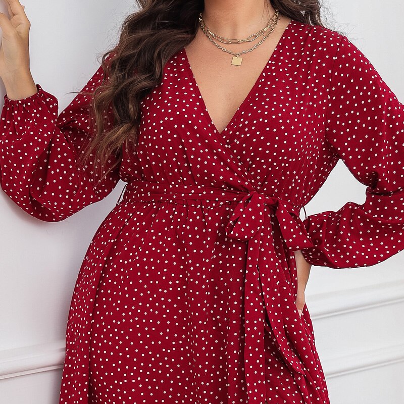 Unser vielseitiges und schmeichelhaftes Tupfenkleid mit V-Ausschnitt ist da! Der leichte und fließende Stoff schmiegt sich wunderbar an jede Figur, während der V-Ausschnitt einen Hauch von Eleganz verleiht. Das Kleid ist in Wickel Stil, der es Ihnen ermöglicht, es für einen figurbetonten Look enger zu schnüren oder es für einen entspannten Look locker zu lassen.