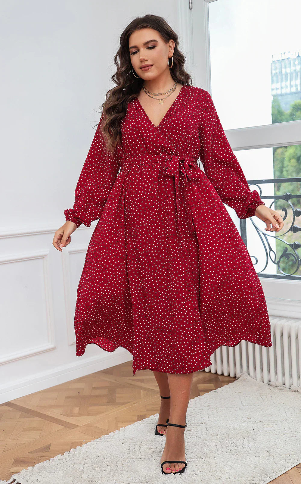 Perfekt für jeden Anlass, von einem legeren Tagesausflug bis hin zu einer besonderen Veranstaltung. Mit seinem zeitlosen Polka-Dot-Print wird dieses Kleid schnell zu einem festen Bestandteil Ihrer Garderobe. Ergänzen Sie es mit einer Statement-Halskette oder Ohrringen, um es aufzupeppen, oder halten Sie es einfach mit Ihrem Lieblingspaar Sandalen.