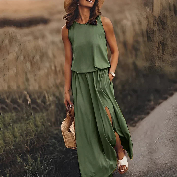 Vielseitiger Maxi-Stil: Dieses ärmellose Maxi-Kleid ist perfekt für verschiedene Anlässe und lässt sich nahtlos von Tag zu Nacht tragen.
