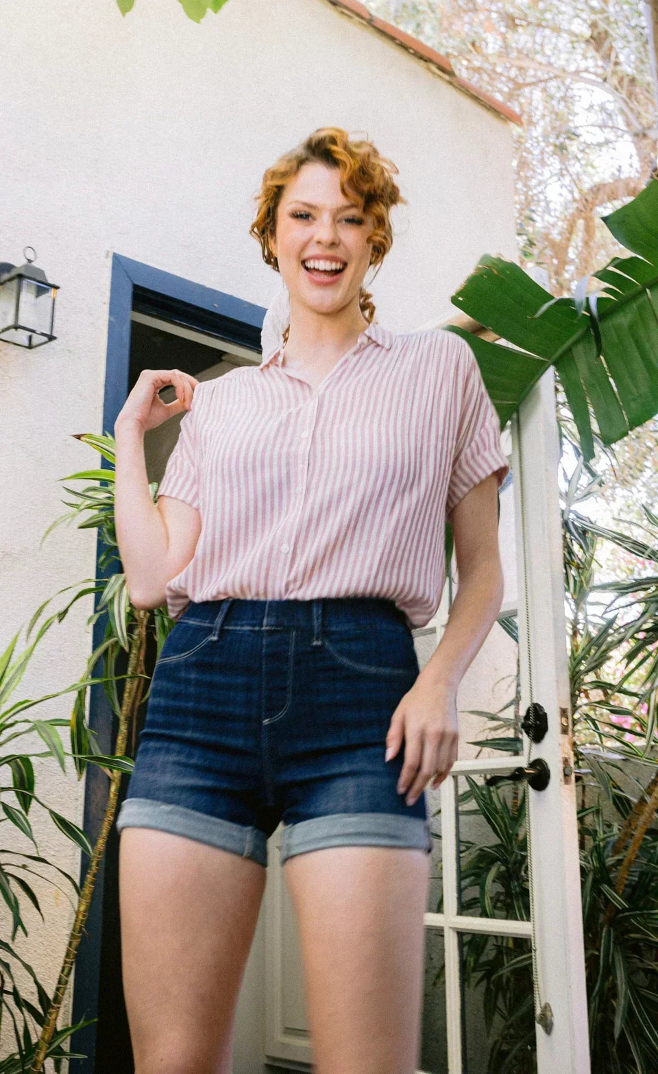 Diese süßen Teile haben eine hohe Taille, sind nicht gestreift und haben einen Saum mit Bündchen, der euren Outfits den letzten Schliff gibt! Die Shorts lassen sich perfekt mit einem einfachen Tank und eurem fließenden Lieblingskimono kombinieren, und sie passen auch hervorragend zu gestreiften Kleidern, die eurem Outfit einen maritimen Touch verleihen. Dieses Paar lässt sich die ganze Saison über ganz einfach nach Belieben auf- oder abtragen! Und KEINE KNOPFEN!!! was für ein Traumpaar.