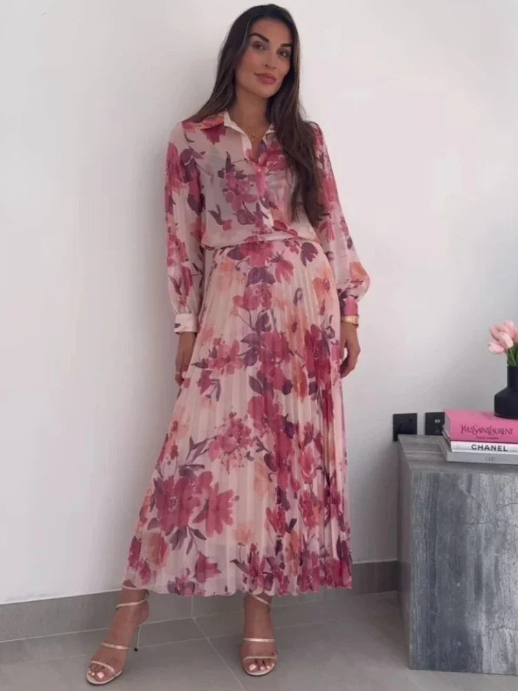 - 1x Kavya | Bedrucktes Blusen-Rock Set Damen für Alltag und Büro