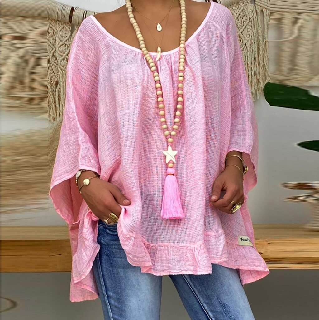 Wir stellen vor: Lola, die ultimative Kombination aus Komfort und Stil! Dieses Tunika-Top wurde entworfen, um Ihr modisches Spiel zu verbessern und Ihnen gleichzeitig höchsten Komfort zu bieten. Die Oversized-Passform sorgt für einen entspannten und lässigen Look, perfekt für jeden lässigen Anlass.