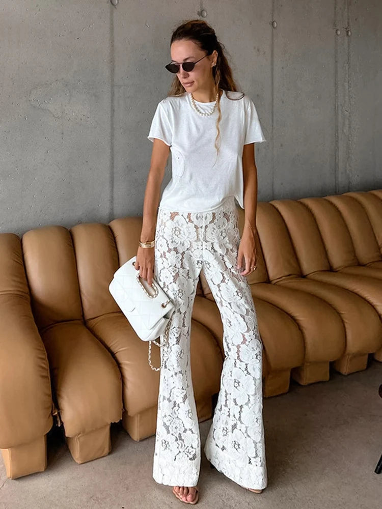 Diese durchscheinende Hose ist das perfekte Statement-Stück für den Sommer und verleiht Ihrem Outfit eine unvergleichliche Raffinesse. Die zarte Spitze sorgt für einen femininen Touch, während das durchscheinende Material eine subtile Enthüllung bietet, die die Fantasie anregt.