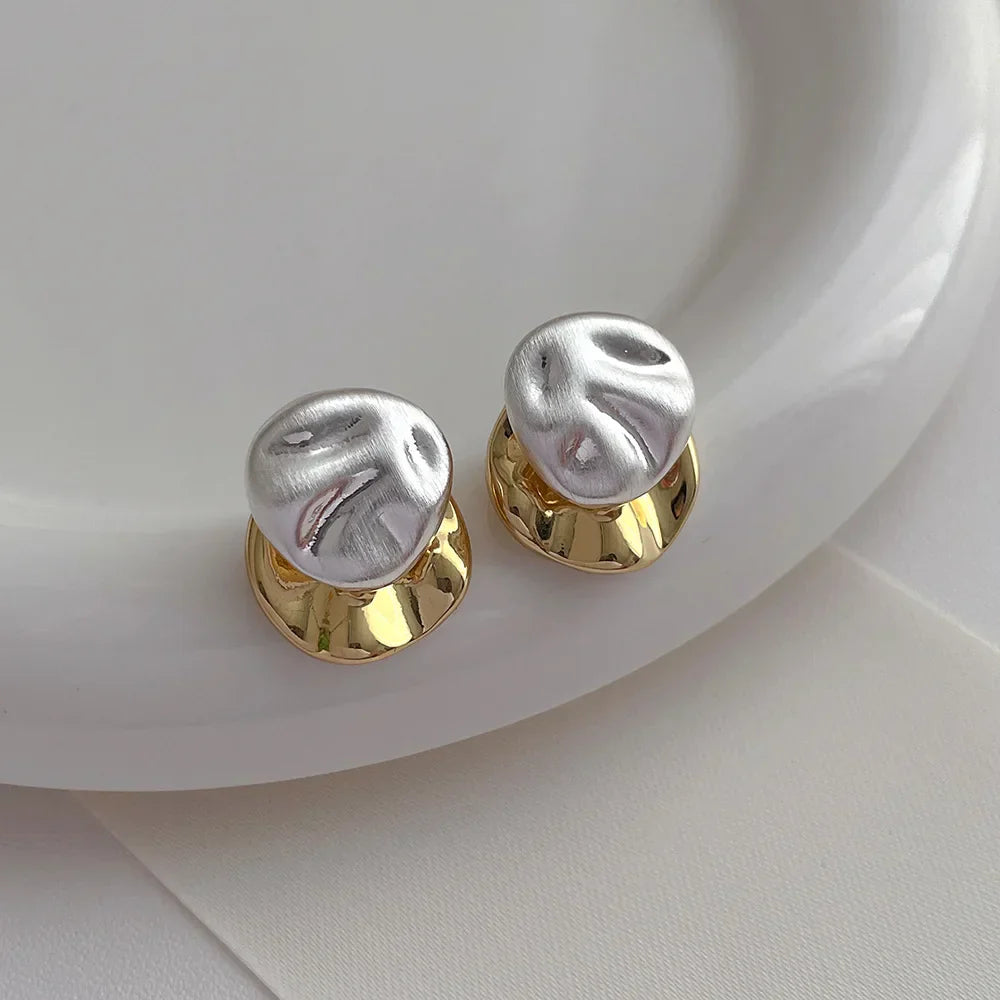 - Schicke runde Ohrstecker mit einem überlappenden Design in einem luxuriösen Farbton für einen auffälligen Look.
