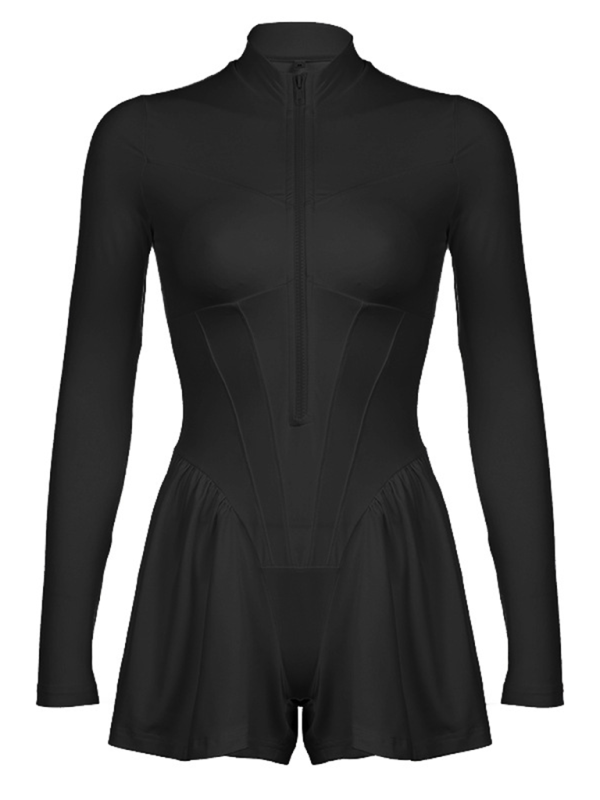 Mode frauen einfarbig casual sportswear reißverschluss weites bein overall shorts