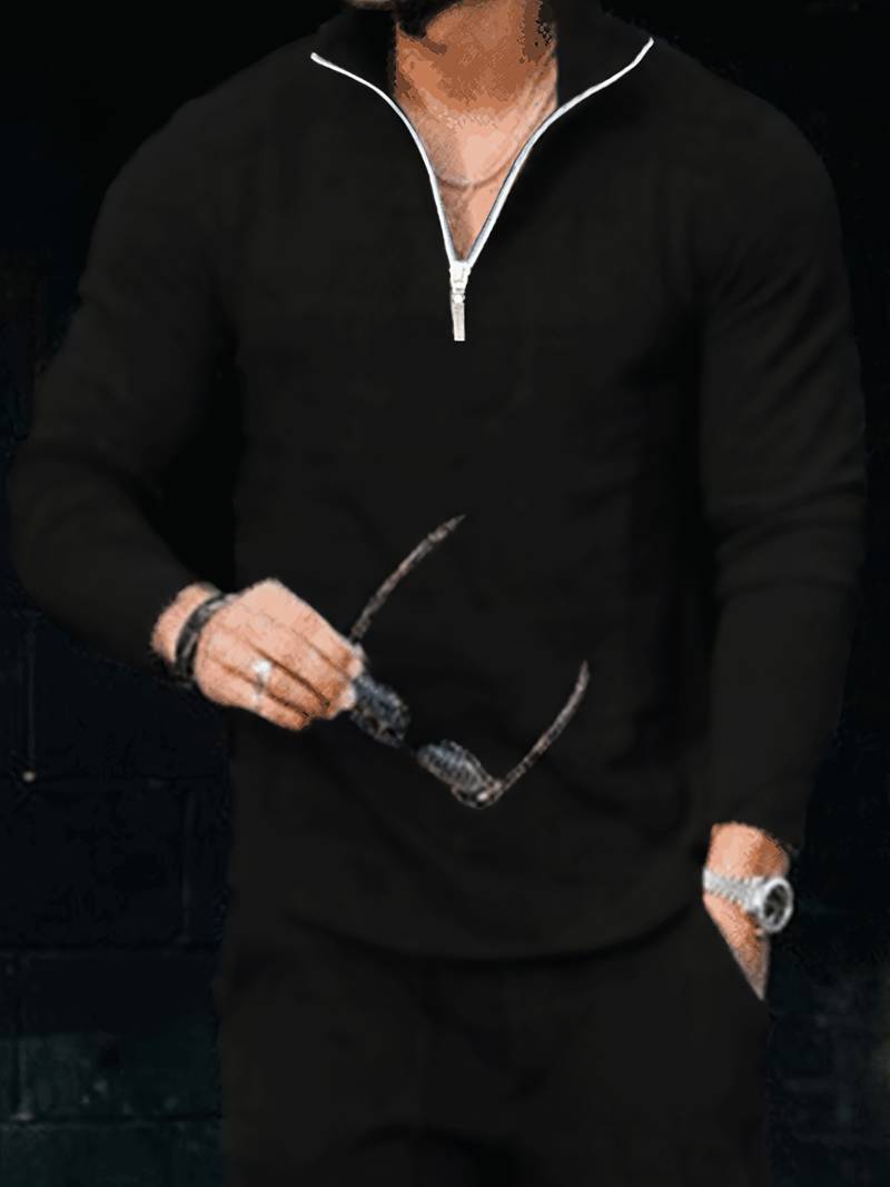 Reginald – Herrenpullover: Waffelstruktur mit Viertelreißverschluss