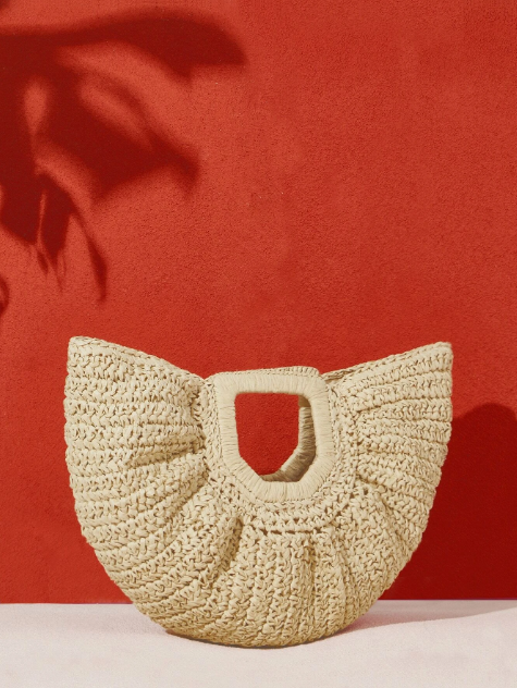 Diese stabile Hängetasche aus Stroh ist perfekt für den Sommerurlaub am Strand geeignet.