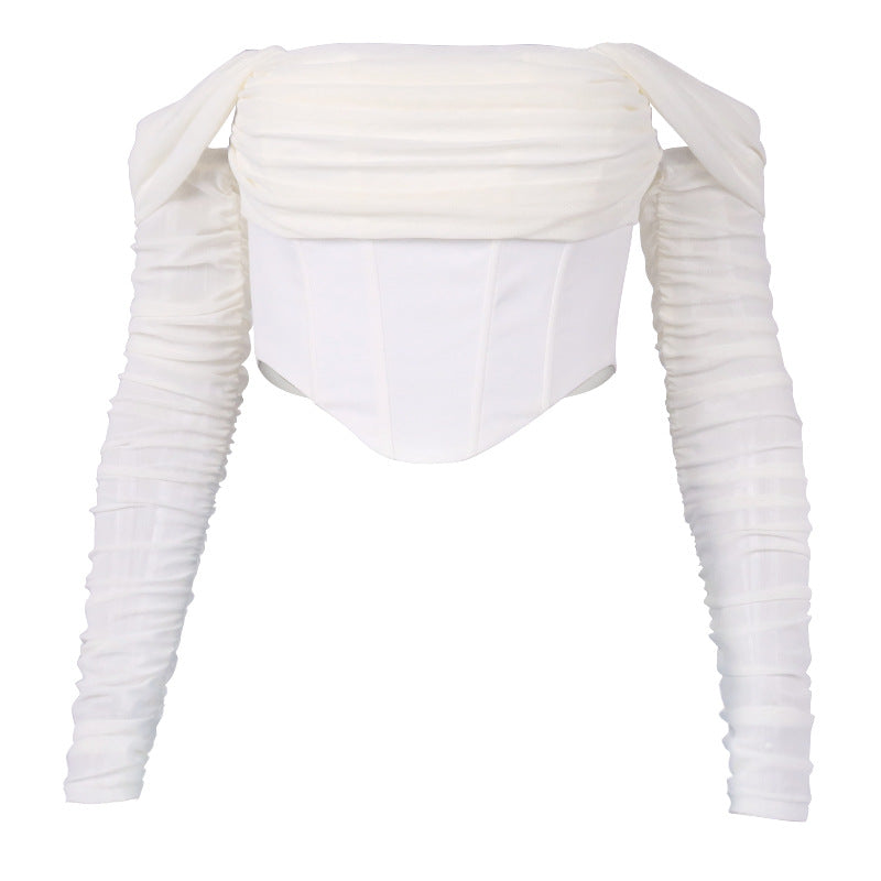 - 1x Stuttgart | Modische Fischgräte Transparenter Ausschnitt Cropped Bluse