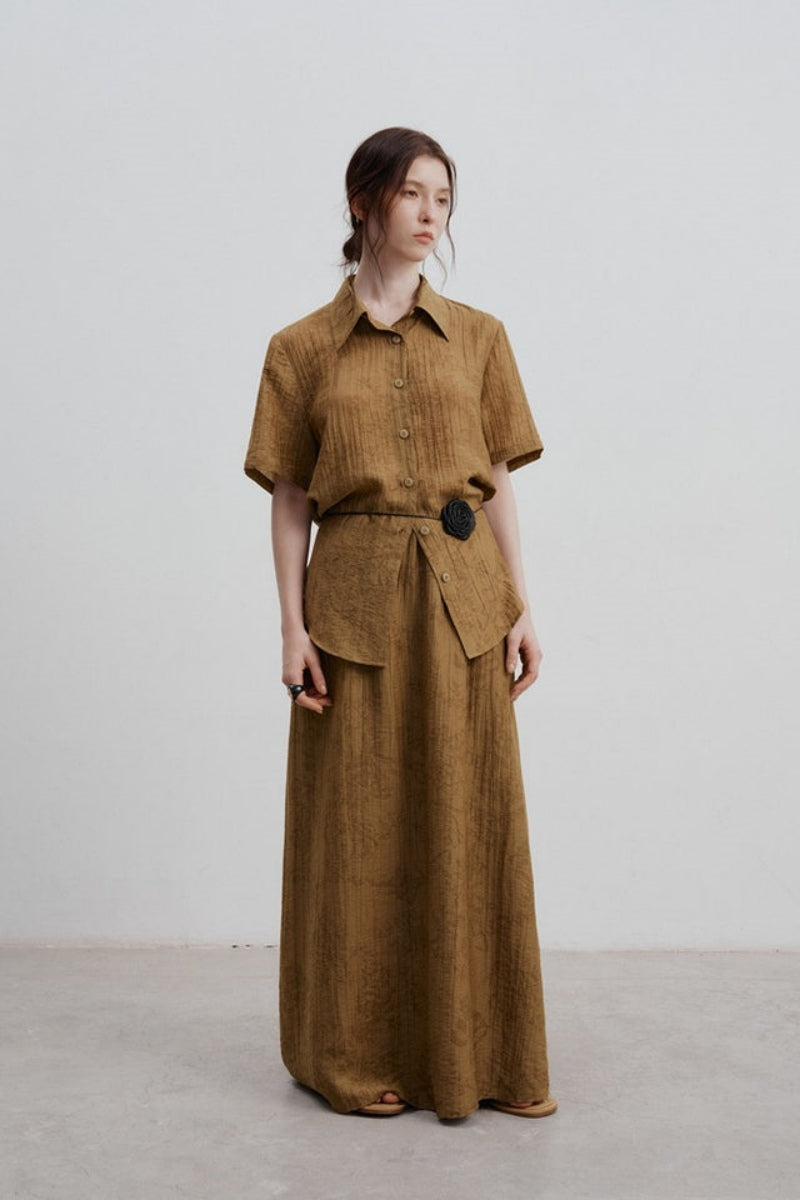 - Design: Zweiteiliges Set mit Rundhals-Top und plissierten langen Ärmeln