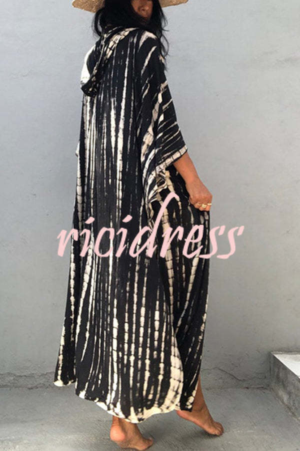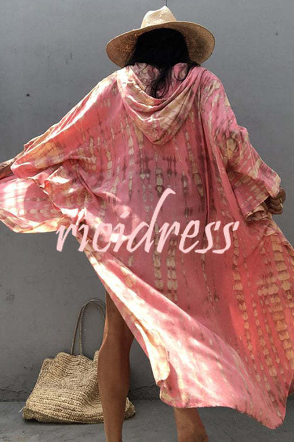 Überwurf mit Kapuze und Batikmuster im Boho-Stil