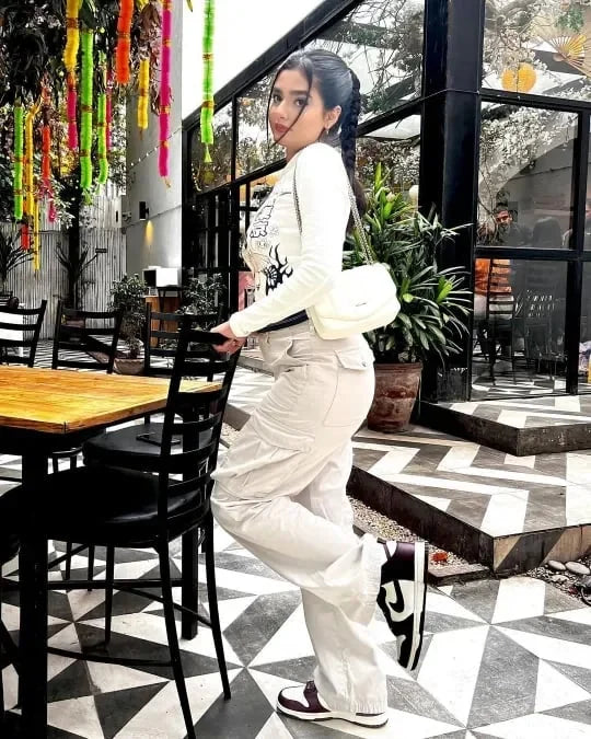 Egal zu welchem Anlass, diese kurvenreiche Cargo-Jeans ist ein absolutes Must-have. Diese Jeans sehen toll aus mit einem T-Shirt und Turnschuhen für einen lässigen Look oder mit einem süßen Crop-Top und Absätzen für einen Ausgeh-Look.